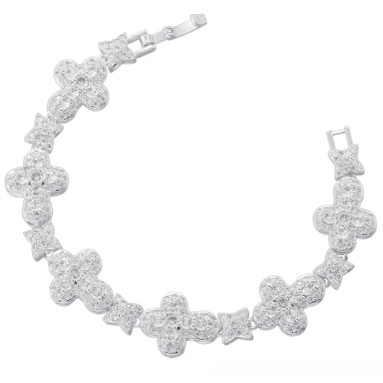 $179.00White gold-plated bracelet with a diamond-studded four-leaf clover charm, symbolizing luck and elegance in a refined, eye-catching design.