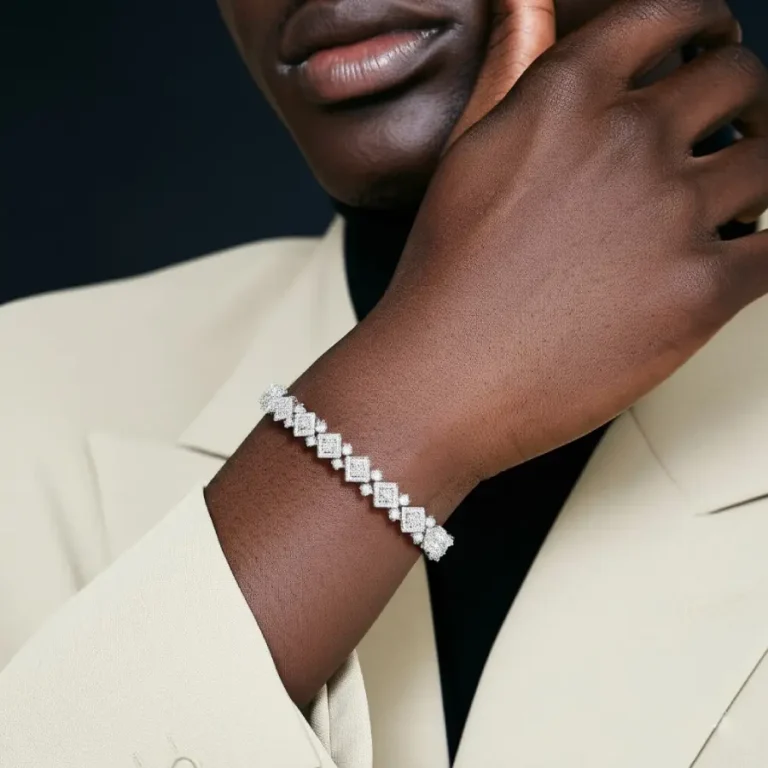 Iced Wheat Bracelet in White Gold – 7mm