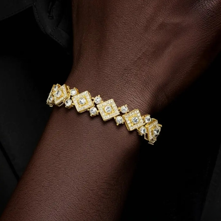 Diamond Three Row Square Zircon Tennis Bracelet in Yellow Gold