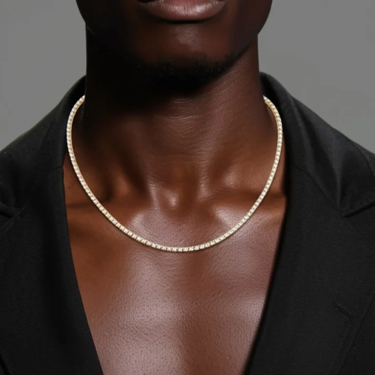 Diamond Inlaid Zircon Single Row Tennis Chain in Yellow Gold – 5mm