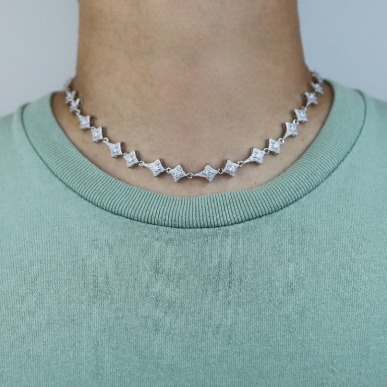 Iced Cross Zircon Star Tennis Chain in White Gold