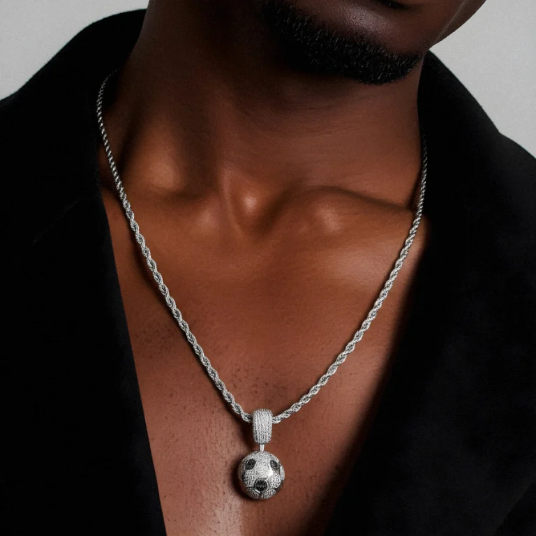 $89.00The Hip-Hop Rugby Pendant features a micro-paved zirconia rugby ball design, combining sports aesthetics with hip-hop style. A must-have trendy accessory for men who love bold fashion.