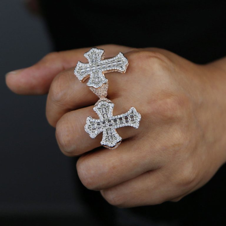 Two-Color Cross Hip-Hop T Square Diamond Ring