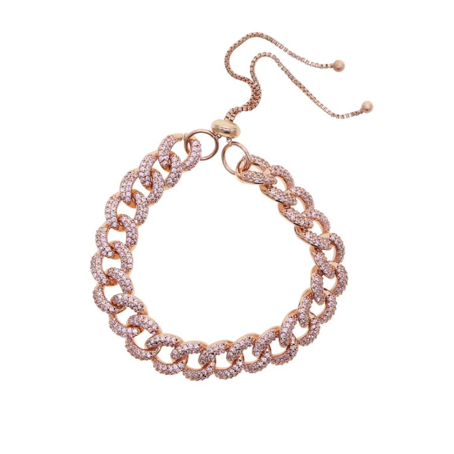The Rose Gold Zircon Cuban Link Bracelet combines punk style with elegance, featuring sparkling zircon stones and an adjustable fit. A perfect fashion-forward accessory for both men and women.