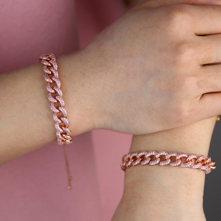 Add a touch of punk-inspired luxury to your look with the Rose Gold Zircon Cuban Link Bracelet. This bold yet elegant piece features high-quality zircon stones embedded in a classic Cuban link design, offering a perfect blend of edgy street style and modern sophistication. The adjustable fit ensures comfort and versatility, making it ideal for both men and women. Whether worn alone or stacked with other bracelets, this trendy accessory is a must-have for those who love statement jewelry with a high-fashion touch.