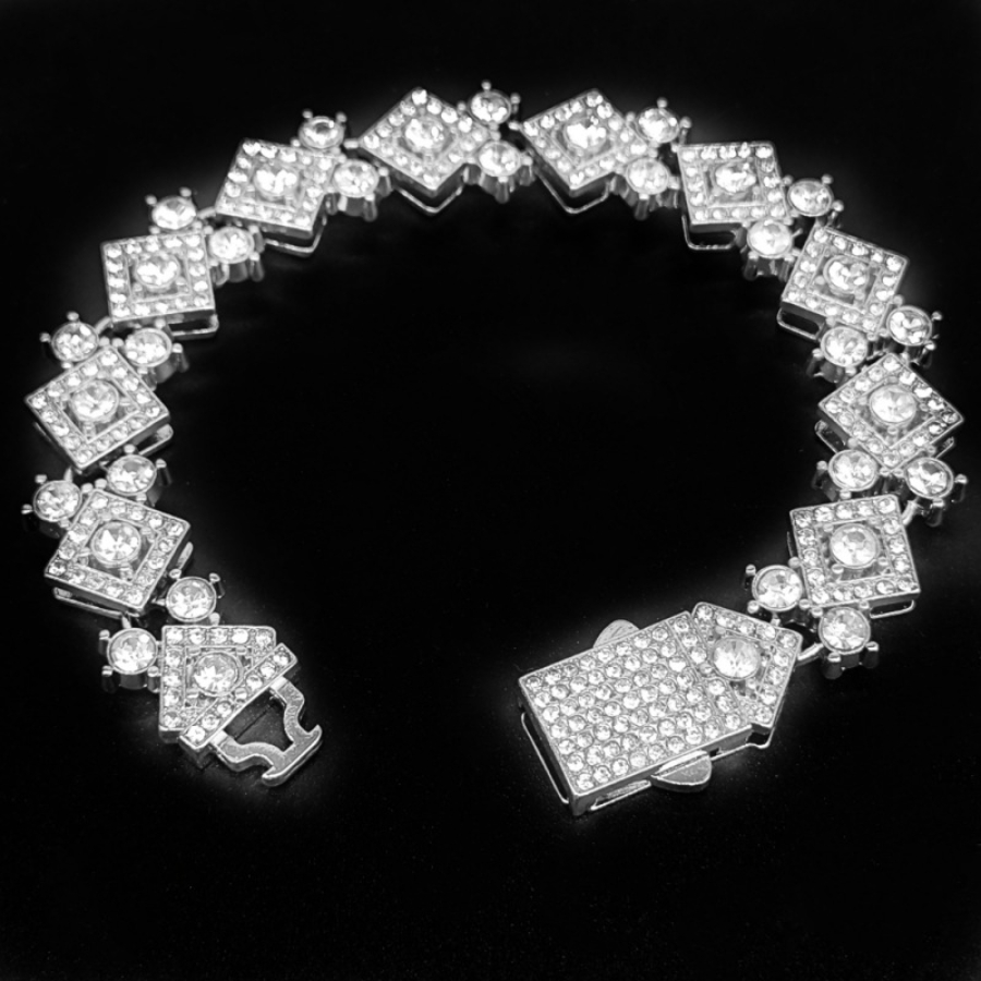 The 15mm Thick Diamond-Cut Square Cuban Link Bracelet is fully encrusted with zircon stones, delivering a flashy, bold look. A must-have hip-hop accessory for those who love standout jewelry.