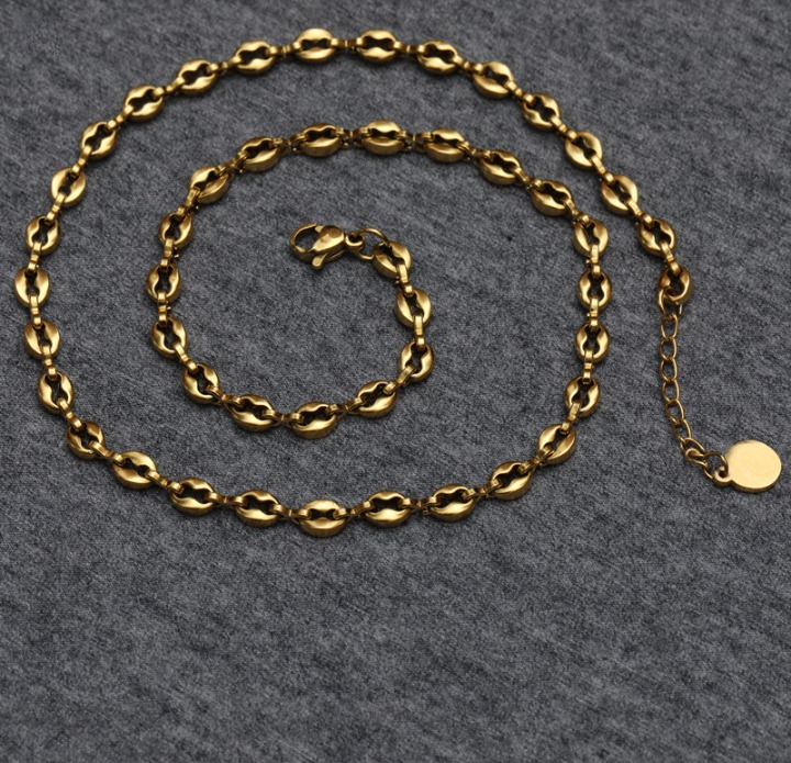 Upgrade your fashion game with the 18K Real Gold Thickened Electroplated Pig Nose Necklace, a bold and stylish stacked collar chain designed for both men and women. Featuring a trendy pig nose link design, this coffee bean clavicle chain exudes a modern, street-style aesthetic, perfect for layering or wearing solo. Made with high-quality electroplating, the necklace offers a luxurious gold shine and durability that ensures long-lasting wear. Whether you’re going for a minimalist look or a bold statement, this Ins-style fashion piece is the perfect addition to your jewelry collection.