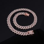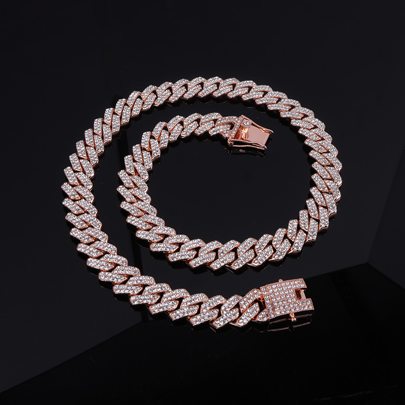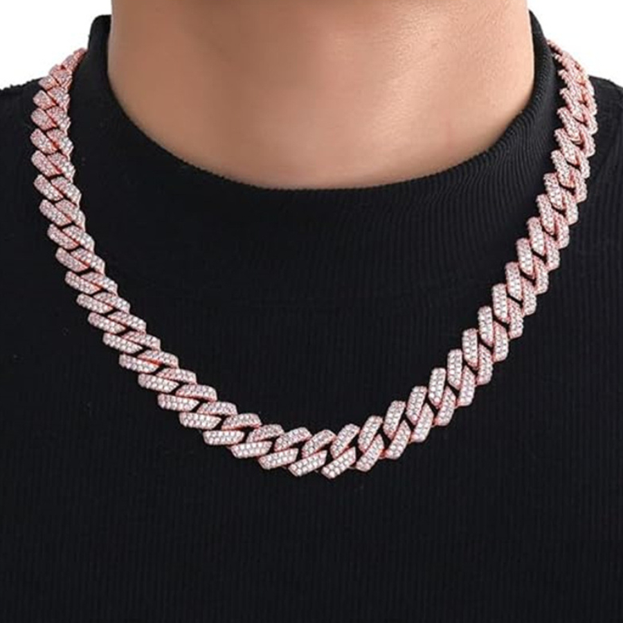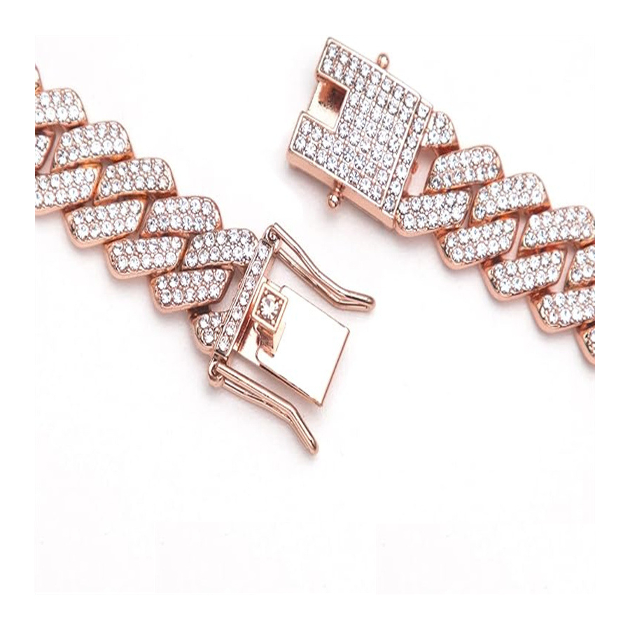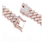 Make a bold statement with the Diamond Bucke Cuban Chain in Rose Gold – 8.5mm, a luxurious blend of hip-hop edge and refined elegance. This iced-out Cuban link chain is meticulously crafted with high-quality diamond simulants, delivering exceptional brilliance and shine. Designed with a secure diamond-studded buckle clasp, it offers both style and durability. The 8.5mm width provides a perfect balance between subtlety and presence, making it a versatile accessory for any occasion. Elevate your jewelry collection with this standout piece.