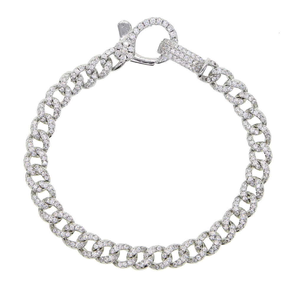 Diamond Handcuff Prong Cuban Bracelet in White Gold – 6mm