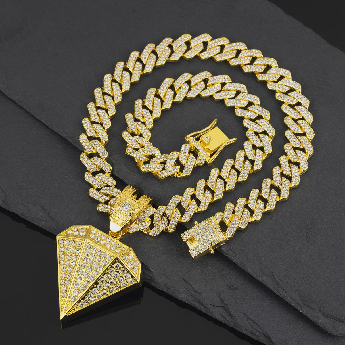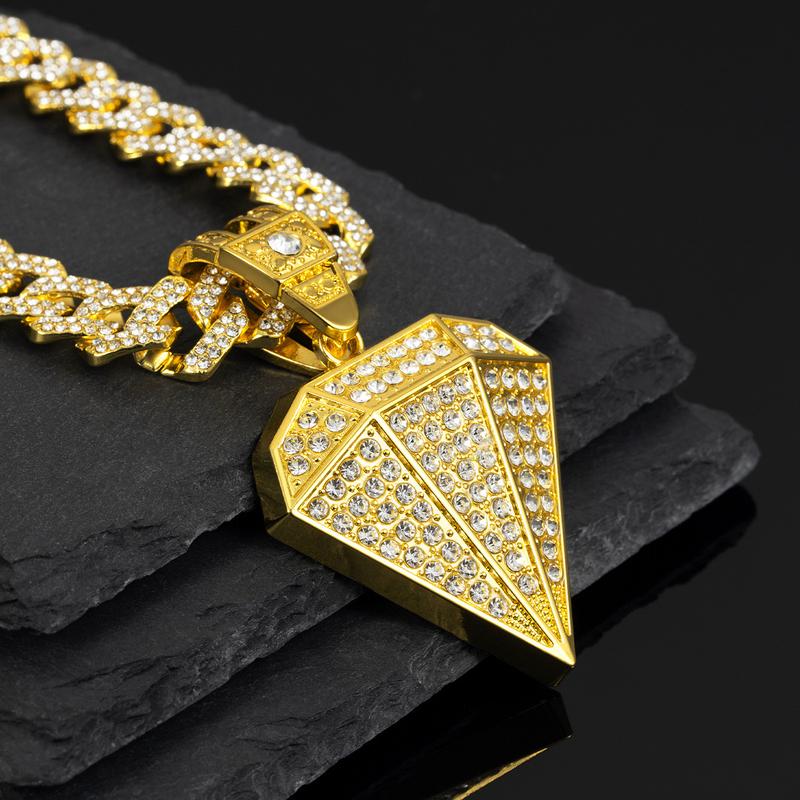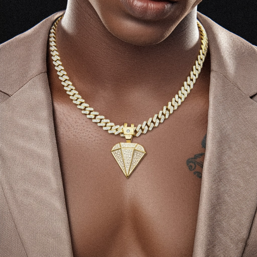 The Diamond Icon Pendant in Yellow Gold features brilliant diamonds set in a sleek, luxurious design, blending hip-hop fashion with timeless elegance for a standout look.