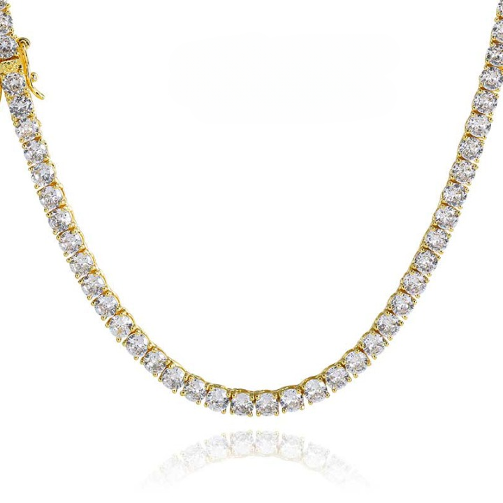 Diamond Inlaid Zircon Single Row Tennis Chain in Yellow Gold – 5mm