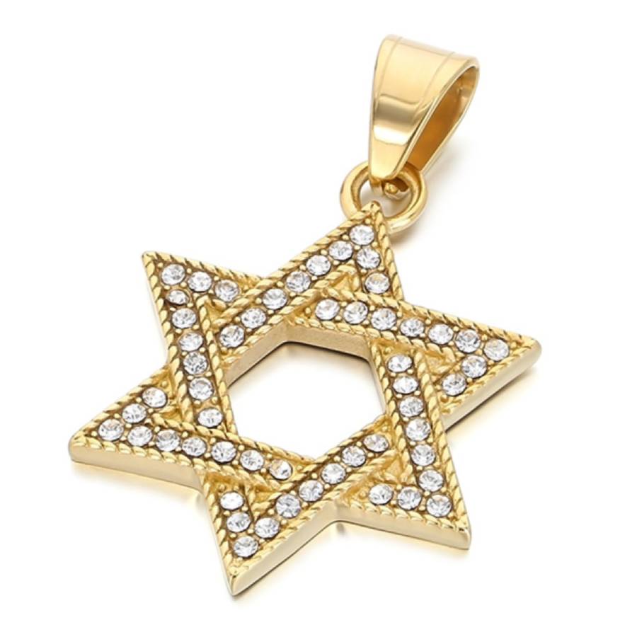 The Hip-Hop Iced-Out Star of David Pendant Necklace features a fully encrusted, sparkling six-point star design. Paired with a sleek sweater chain, it’s the perfect accessory to add a bold and stylish edge to your streetwear collection.