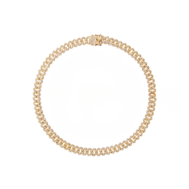 SPECIFICATION OF DIAMOND RHINESTONE CUBAN LINK CHAIN IN YELLOW GOLD - 12MM