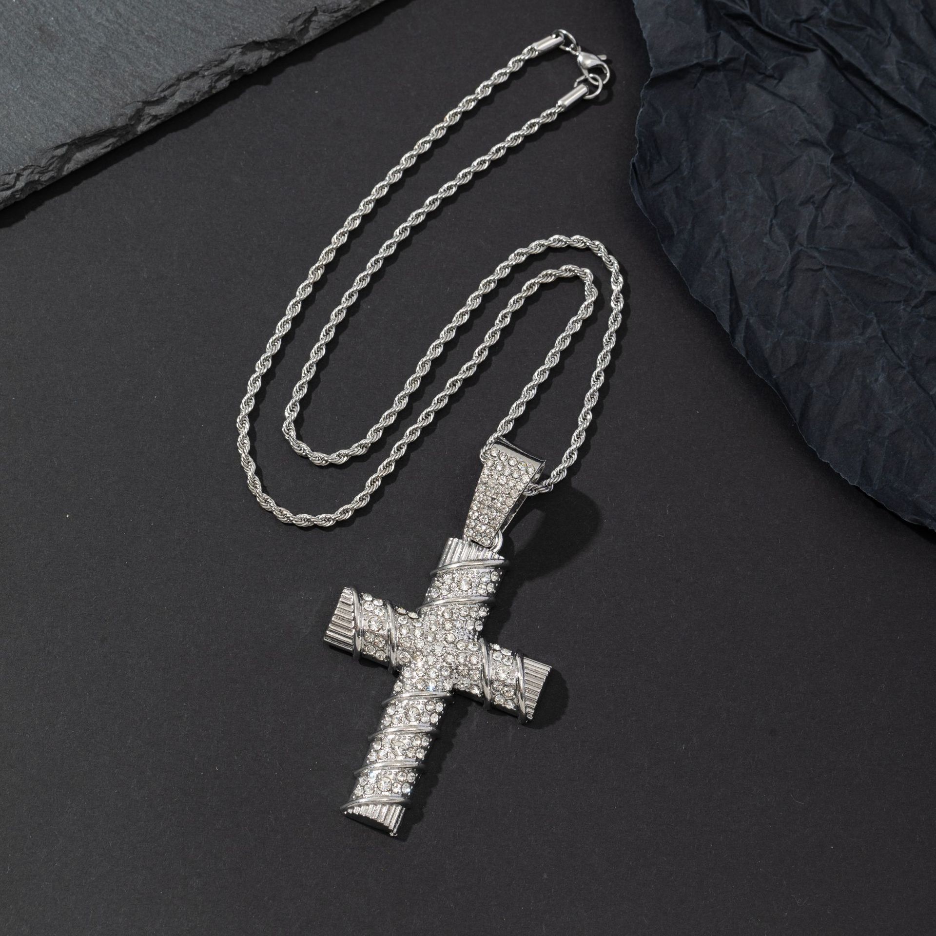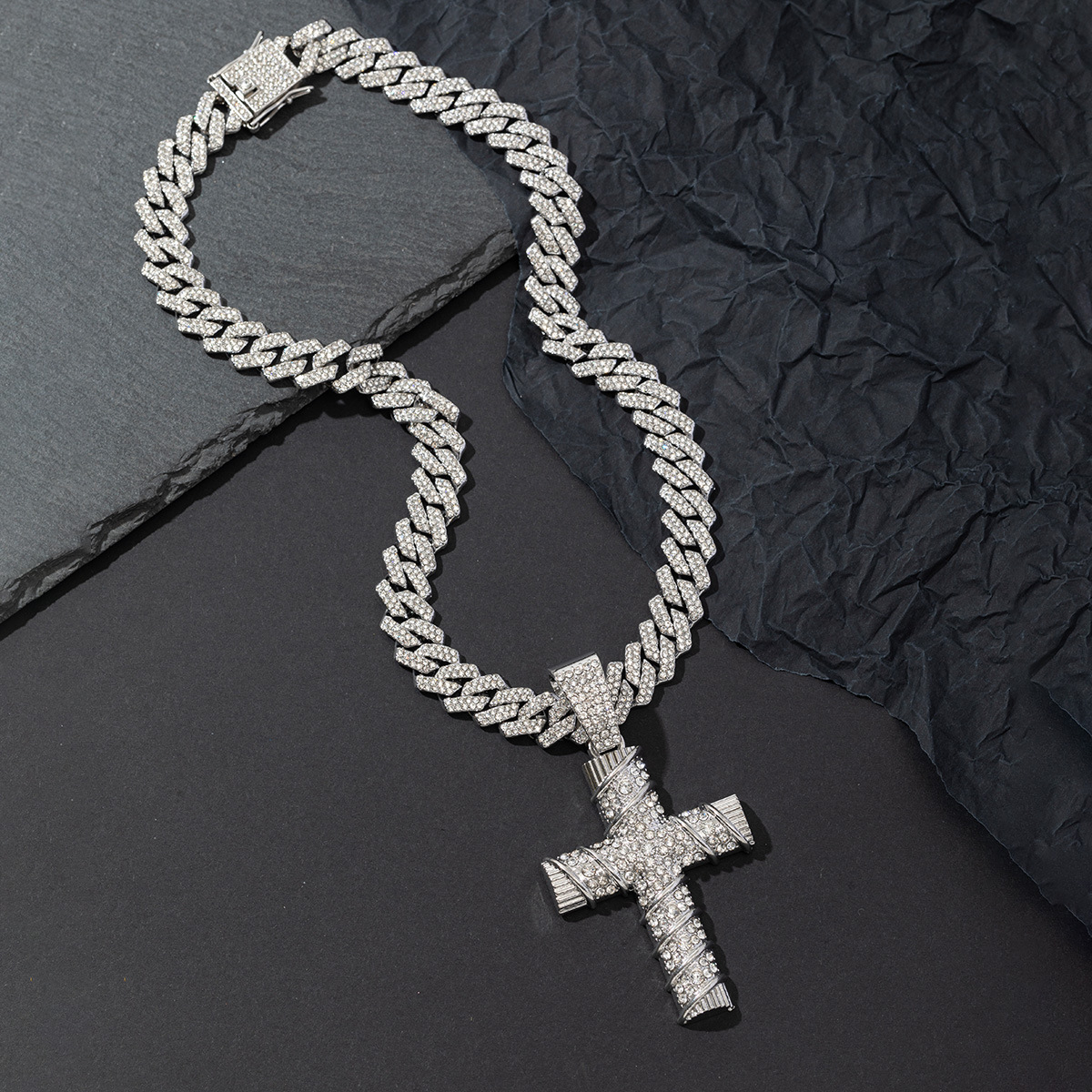 The Diamond Rope Cross Pendant in White Gold blends faith and fashion, featuring a rope-textured cross encrusted with brilliant diamonds, making it a standout hip-hop jewelry piece.