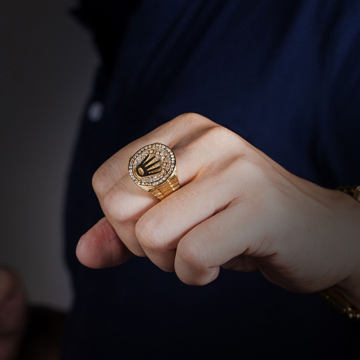 This fashion-forward ring combines the regal elegance of a crown with the boldness of retro design. The rhinestone detailing adds sparkle and sophistication, making it a standout piece for those who love classic yet trendy jewelry.