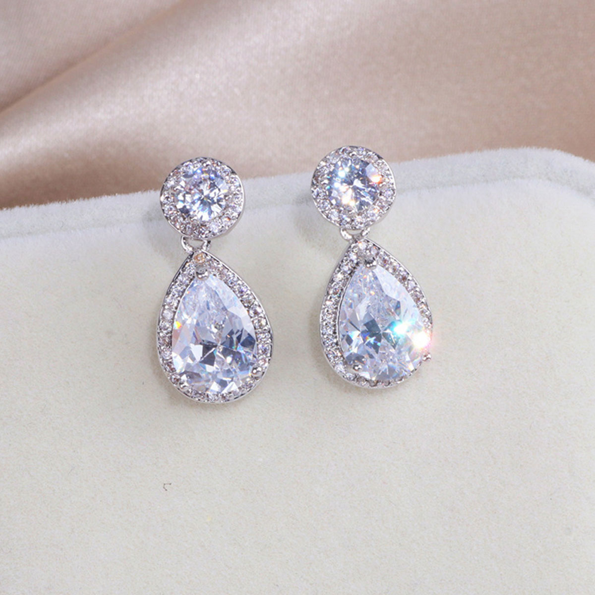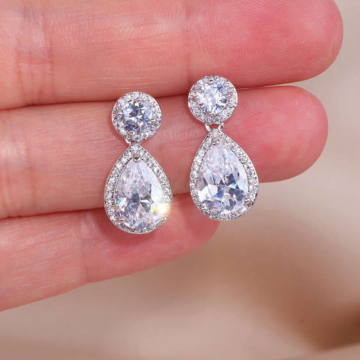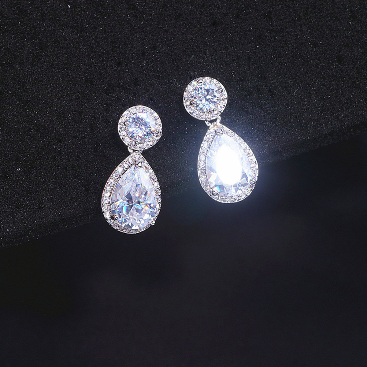 These drop-shaped geometric earrings provide a unique and elegant style. With zircon inlays, they bring a luxurious vibe while maintaining a trendy look for both men and women.