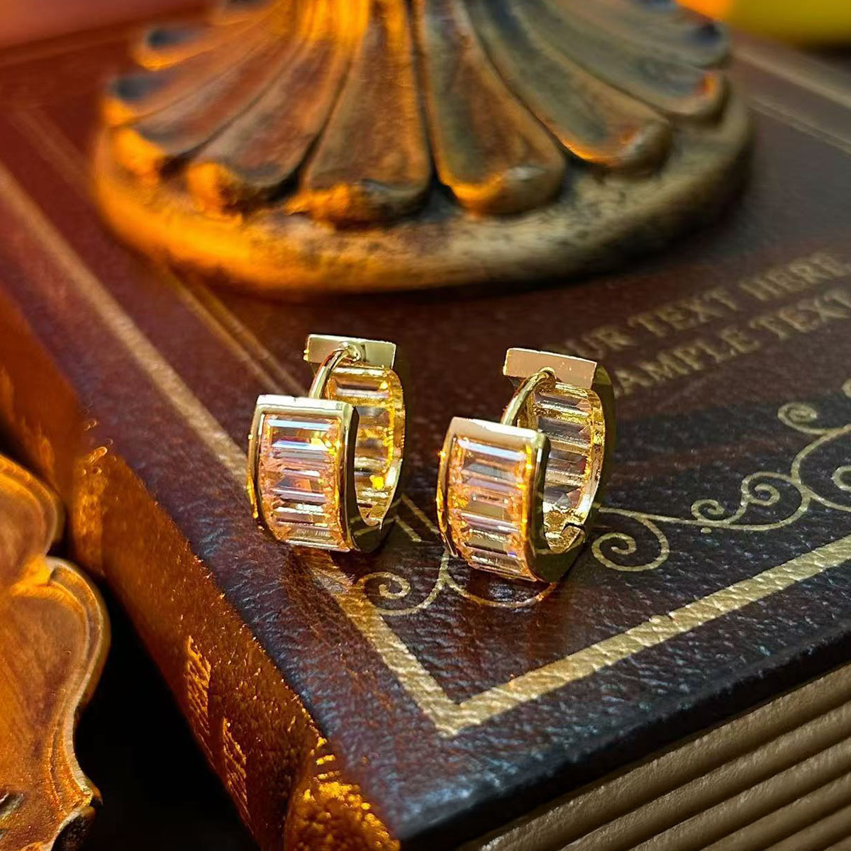 Elegant round ear buckles with copper inlaid zircon for a refined touch.