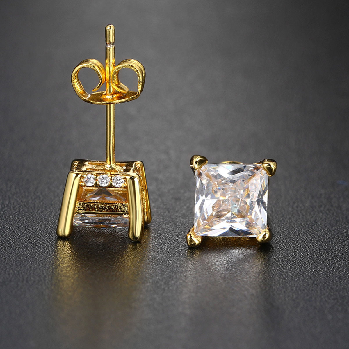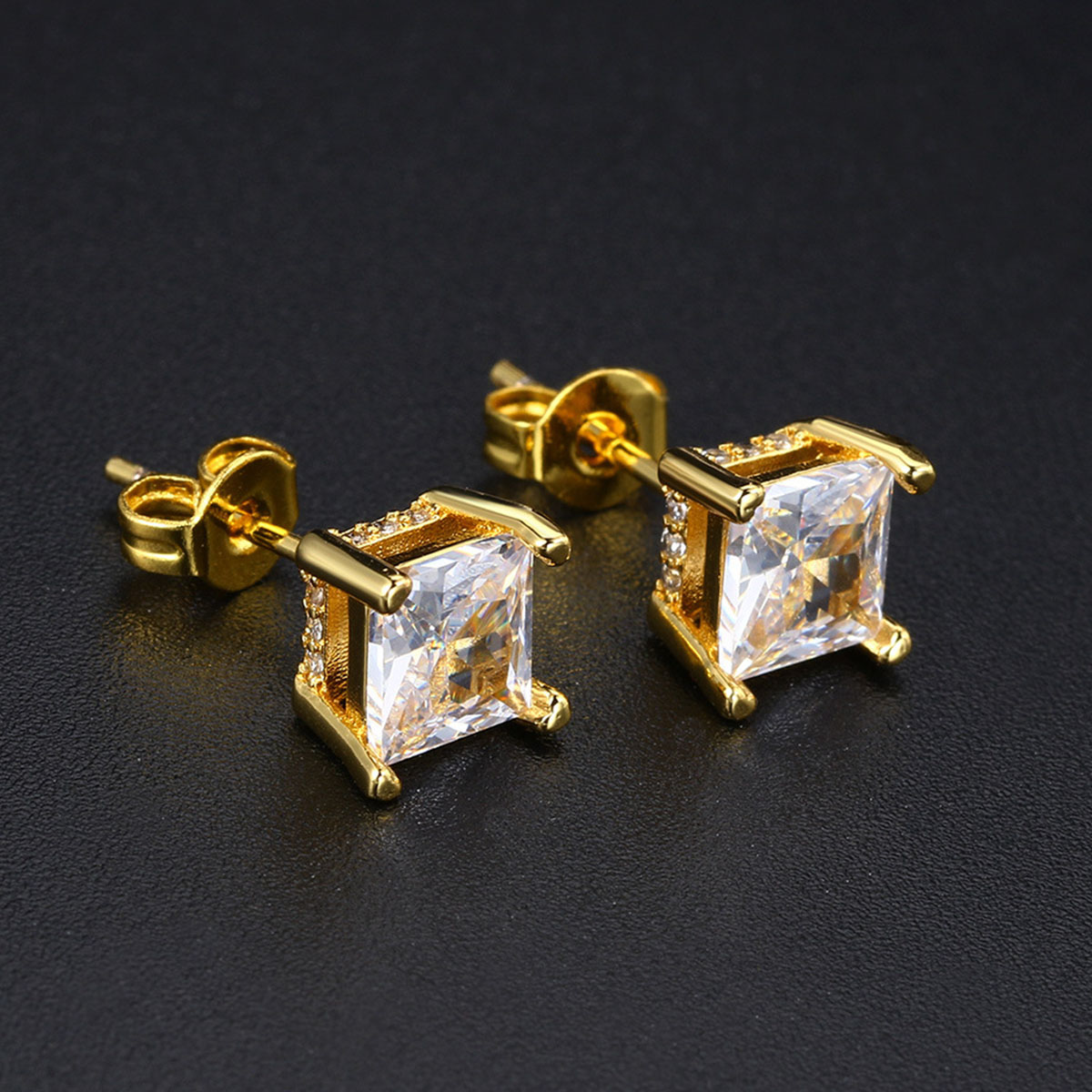 Trendy hip-hop earrings with a quadrilateral design and micro zircon inlay for a unique street look.