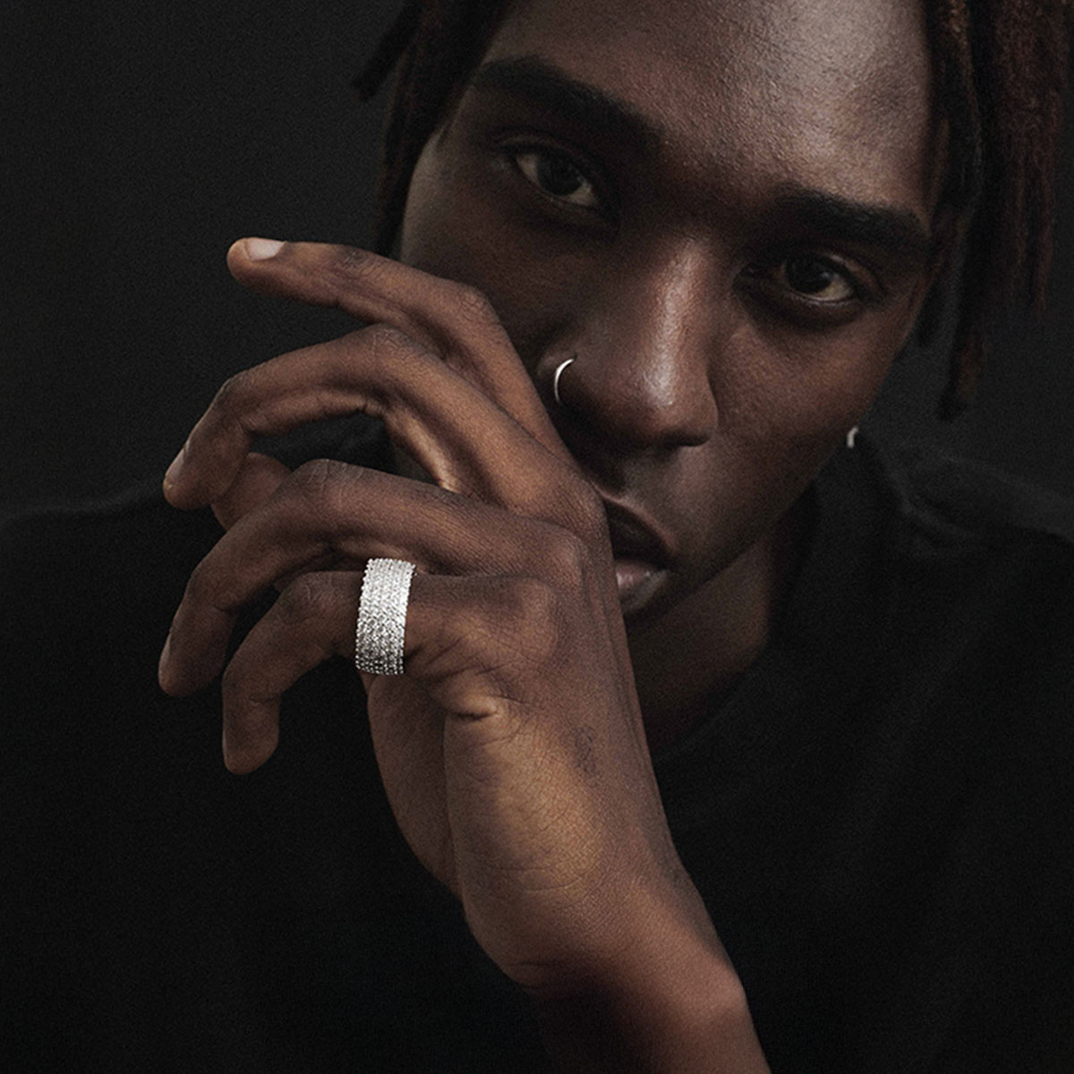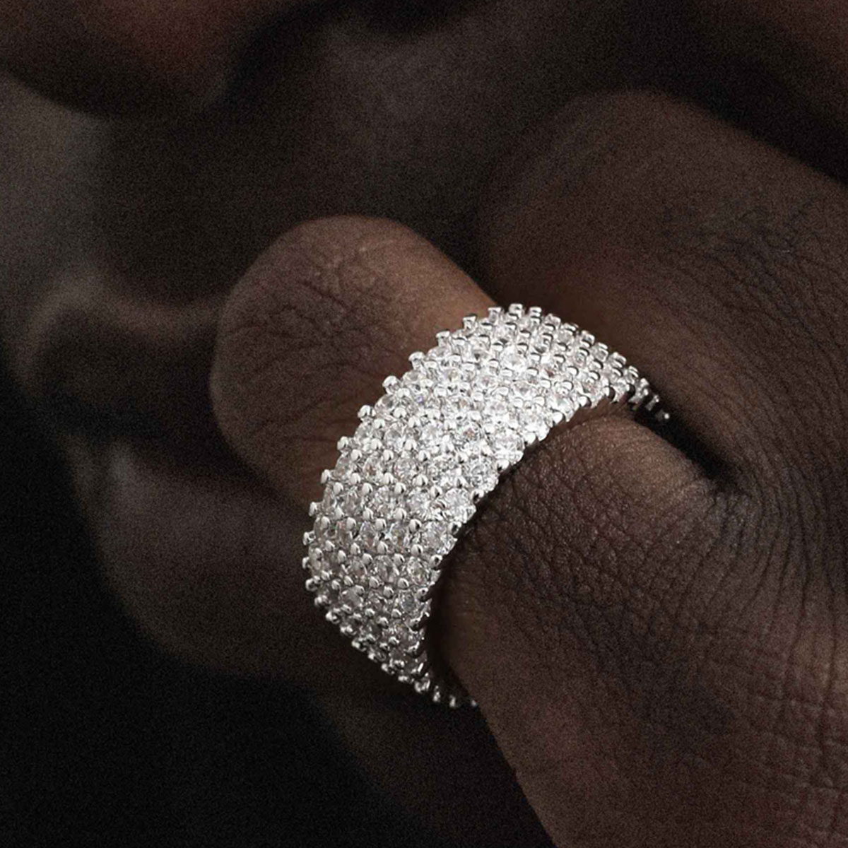 A bold and dazzling 10mm Cuban-style ring encrusted with zircon diamonds for a hip-hop inspired luxury look.