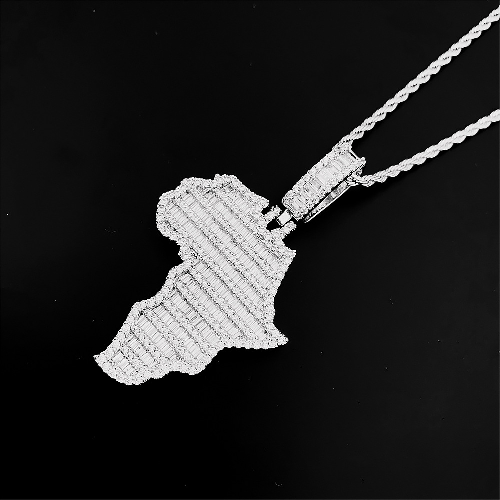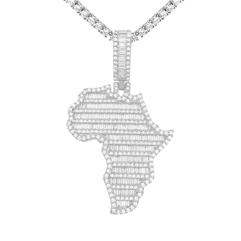 Iced Baguette Africa Pendant In White Gold
