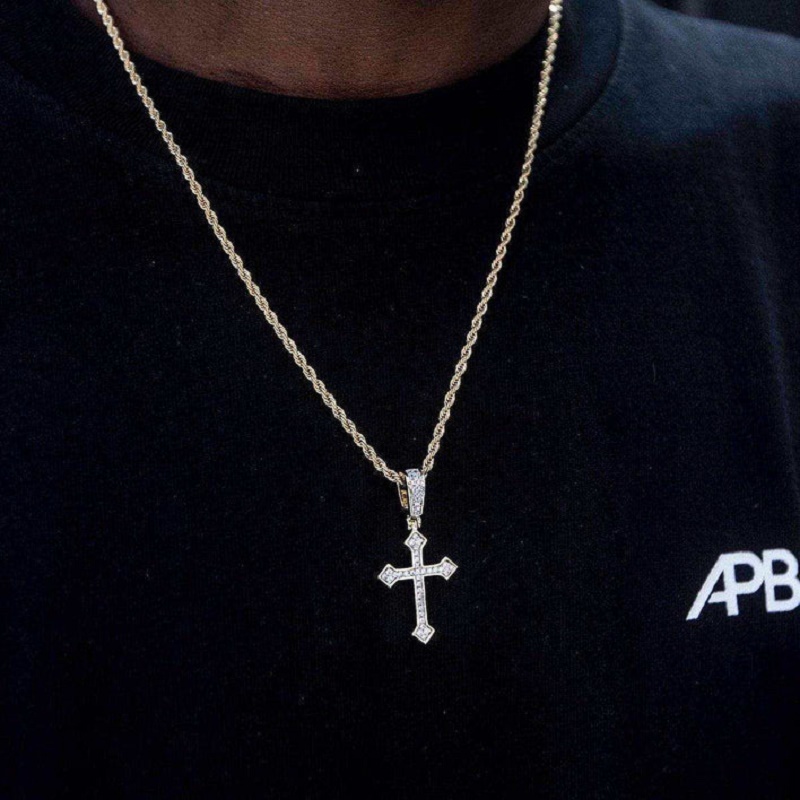 This Celtic Cross Necklace features a solid small cross pendant with zircon stones, blending hip-hop fashion and heritage symbolism. A stylish and meaningful accessory for men and women alike.