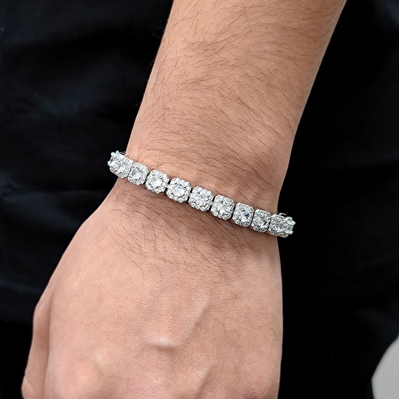 The 7mm Fine Ice Sugar Bracelet features shiny zircon stones and a sleek, thin Cuban design, adding a touch of light luxury and hip-hop flair to any look. Perfect for the fashion-forward man.