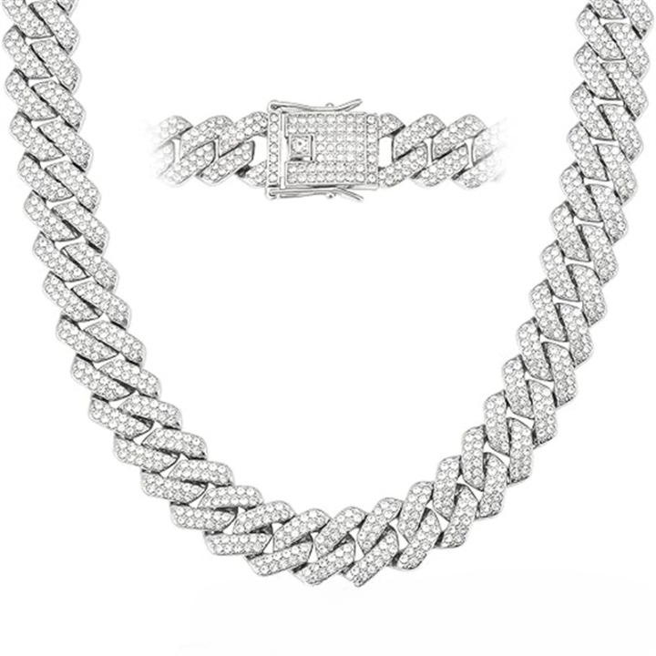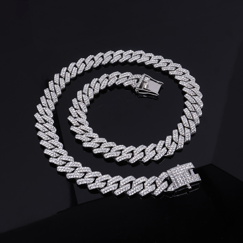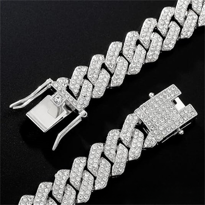 The Full Diamond Buckle Cuban Chain is a hot-selling fashion accessory, featuring an iced-out design with a diamond-encrusted buckle. A must-have for men and women looking for bold, stylish hip-hop jewelry.