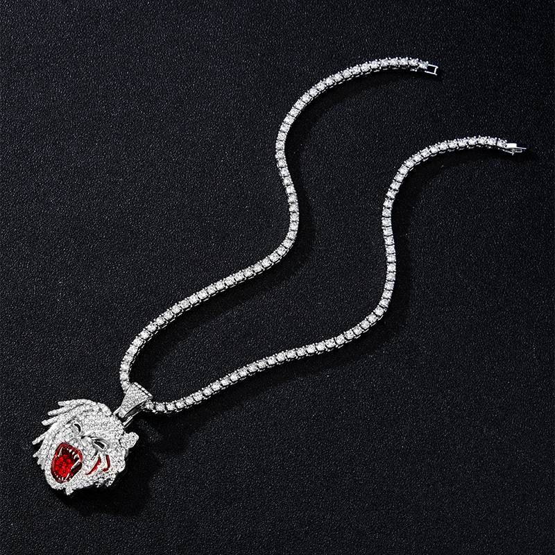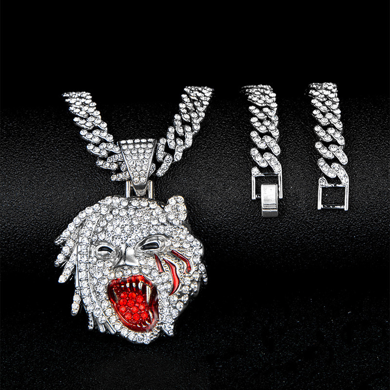 The Hip-Hop Iced-Out Roaring Face Pendant Necklace features a bold roaring face design with sparkling stones and enamel accents. Paired with a sturdy Cuban link chain, it’s a stylish and durable accessory perfect for rap and streetwear enthusiasts.