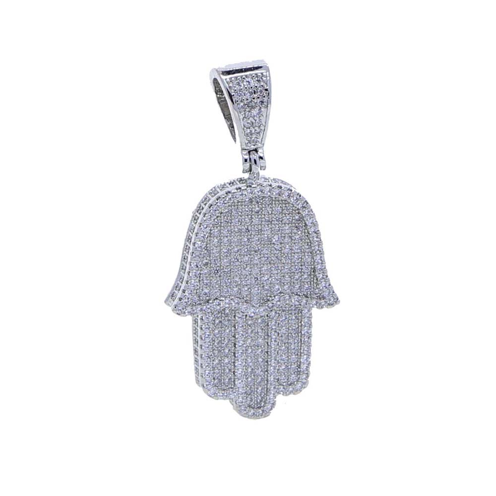 Iced Hamsa Hand of Fatima Pendant in White Gold