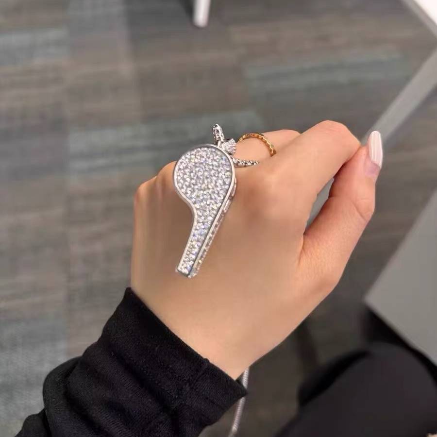 Make a bold statement with the Iced Large Whistle Pendant in White Gold. This oversized pendant is crafted with precision and fully iced out with sparkling cubic zirconia stones, creating a high-shine effect that demands attention. The white gold finish adds a touch of luxury, while the whistle design brings a unique twist to your hip-hop jewelry collection. Whether you’re hitting the streets or the club, this pendant is designed to stand out and elevate your style to the next level.