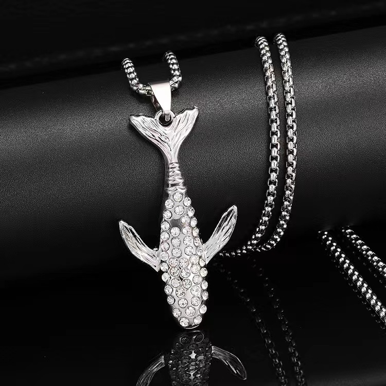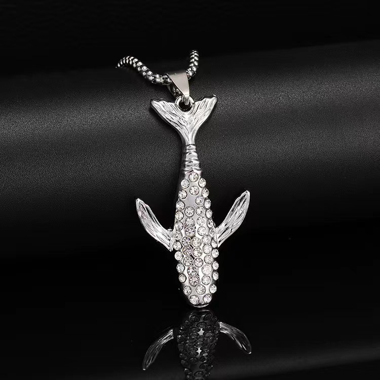 The Koi Pendant in White Gold is an iced-out hip-hop jewelry piece, symbolizing resilience and power. Designed with CZ stones and a sleek finish, it’s a standout accessory for any look.