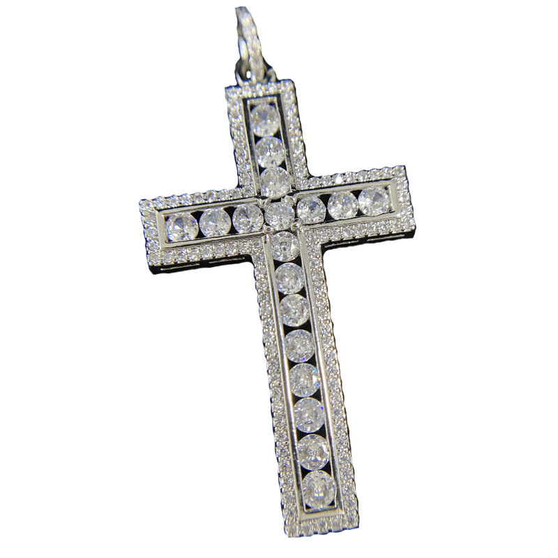 SPECIFICATION OF LARGE DIAMOND PAVE CROSS PENDANT IN WHITE GOLD