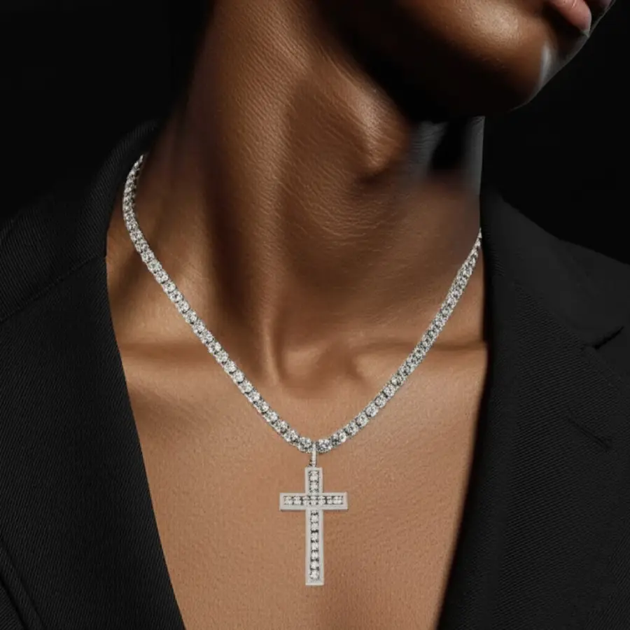 Make a bold statement with the Large Diamond Pave Cross Pendant in White Gold. This luxurious piece features a fully iced-out design, encrusted with brilliant pavé-set diamonds that sparkle from every angle. The white gold finish adds a sleek and modern touch, making it the perfect accessory for those who want to elevate their hip-hop jewelry collection. Whether worn solo or layered with other pieces, this cross pendant represents both faith and high-end fashion.