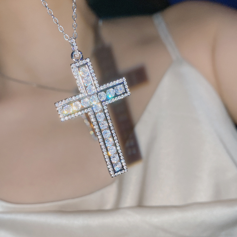 The Large Diamond Pave Cross Pendant in White Gold is a stunning hip-hop jewelry piece, featuring a fully encrusted pavé diamond design with a sleek white gold finish, delivering ultimate shine and luxury.