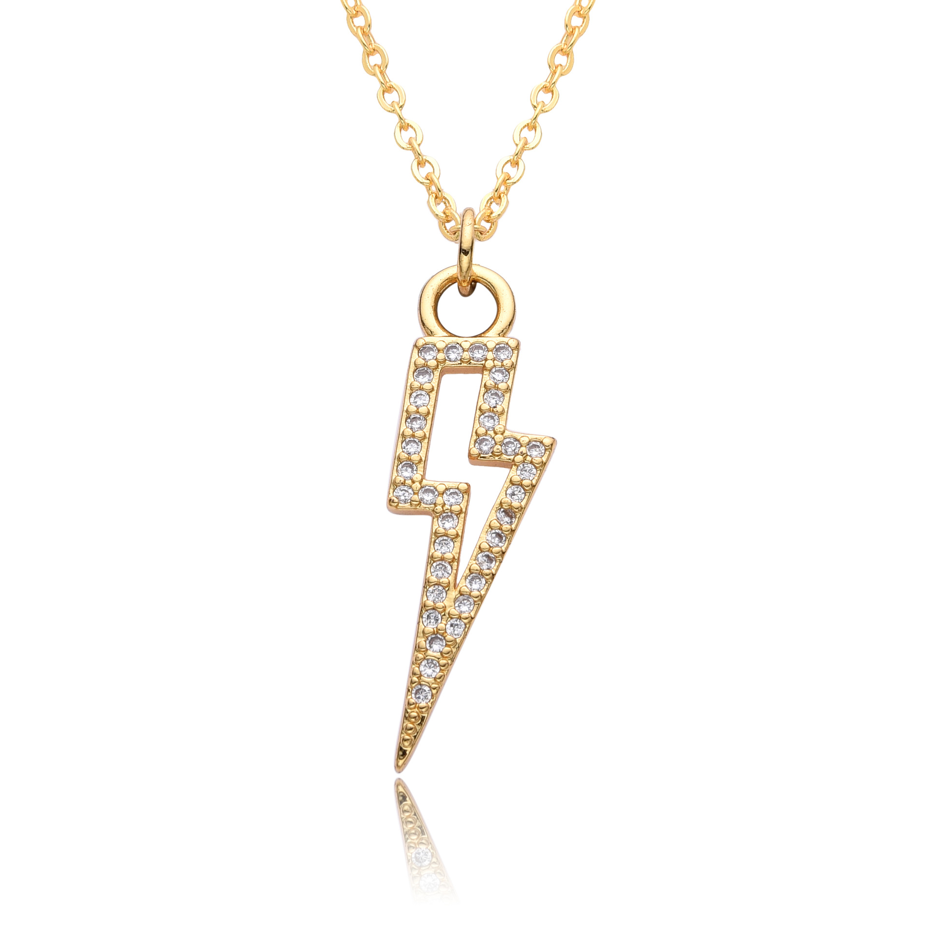 Be the first to review “Micro Iced Lightning Bolt Pendant in Yellow Gold”