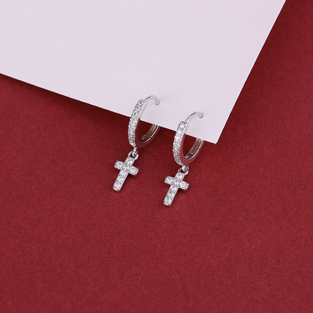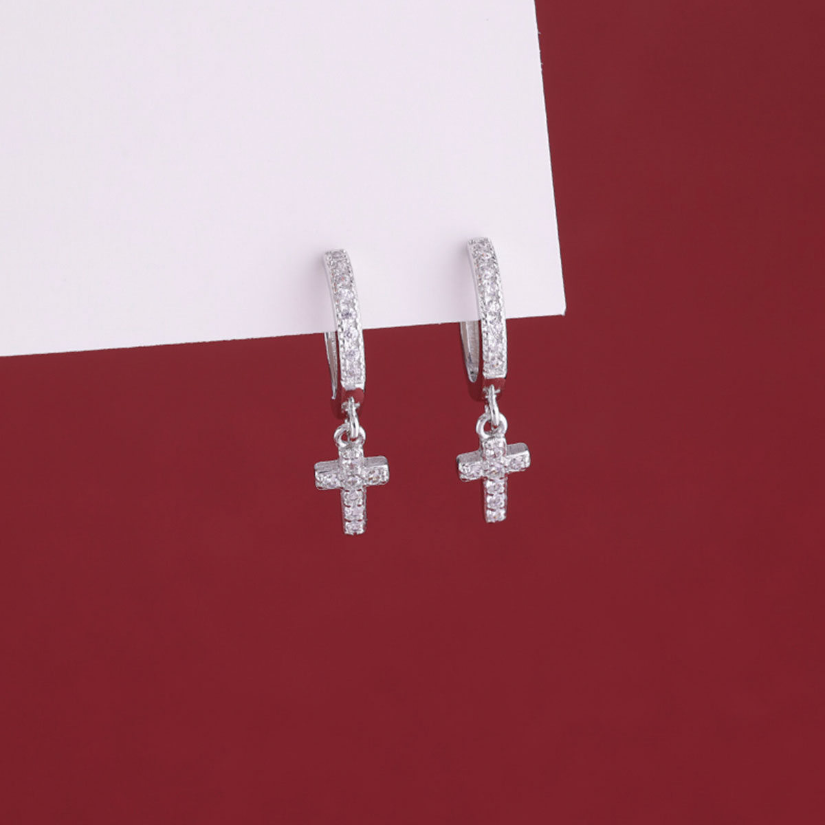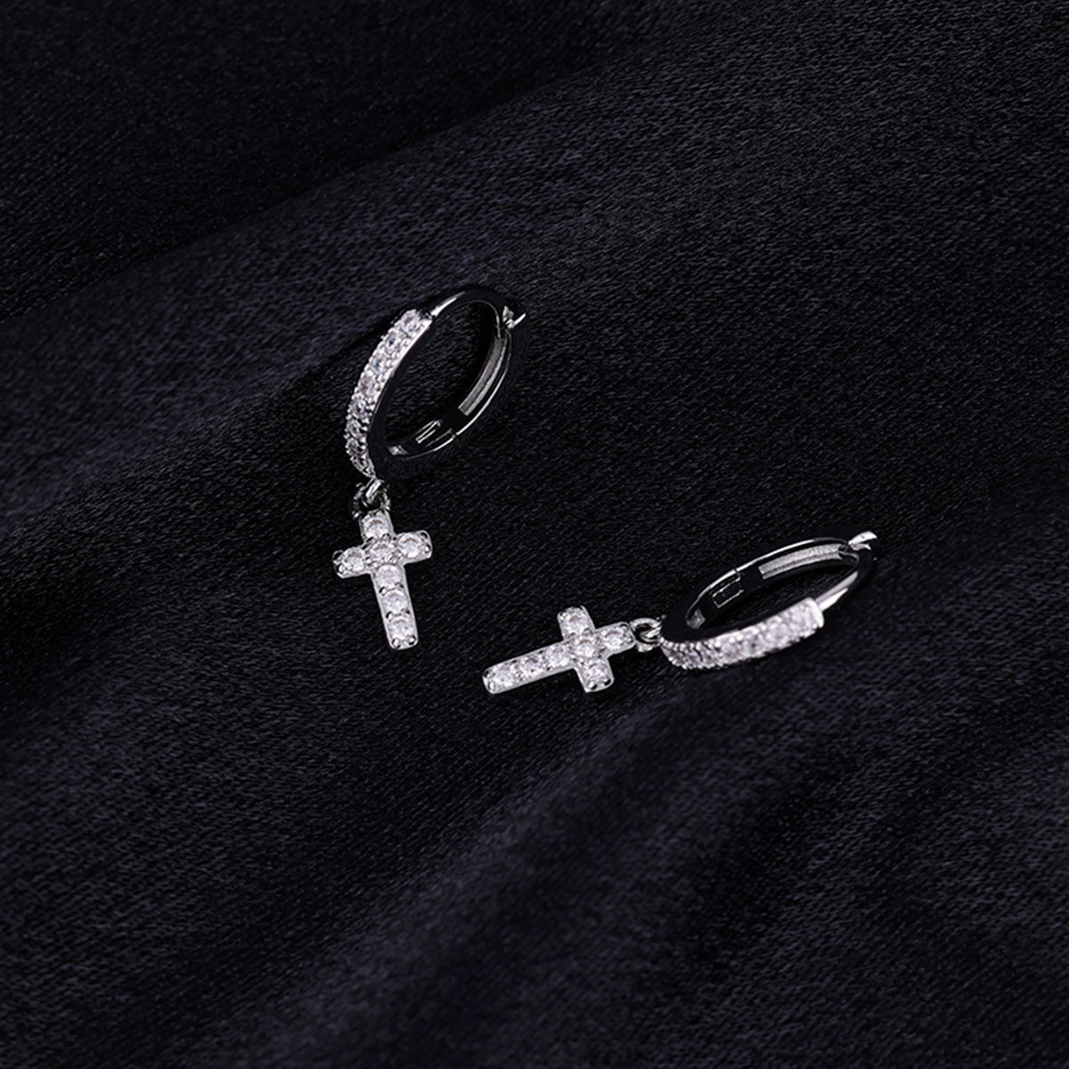 Made from premium S925 sterling silver, these earrings feature a sleek cross design that enhances any look. Their lightweight yet durable construction ensures comfort and long-lasting shine.