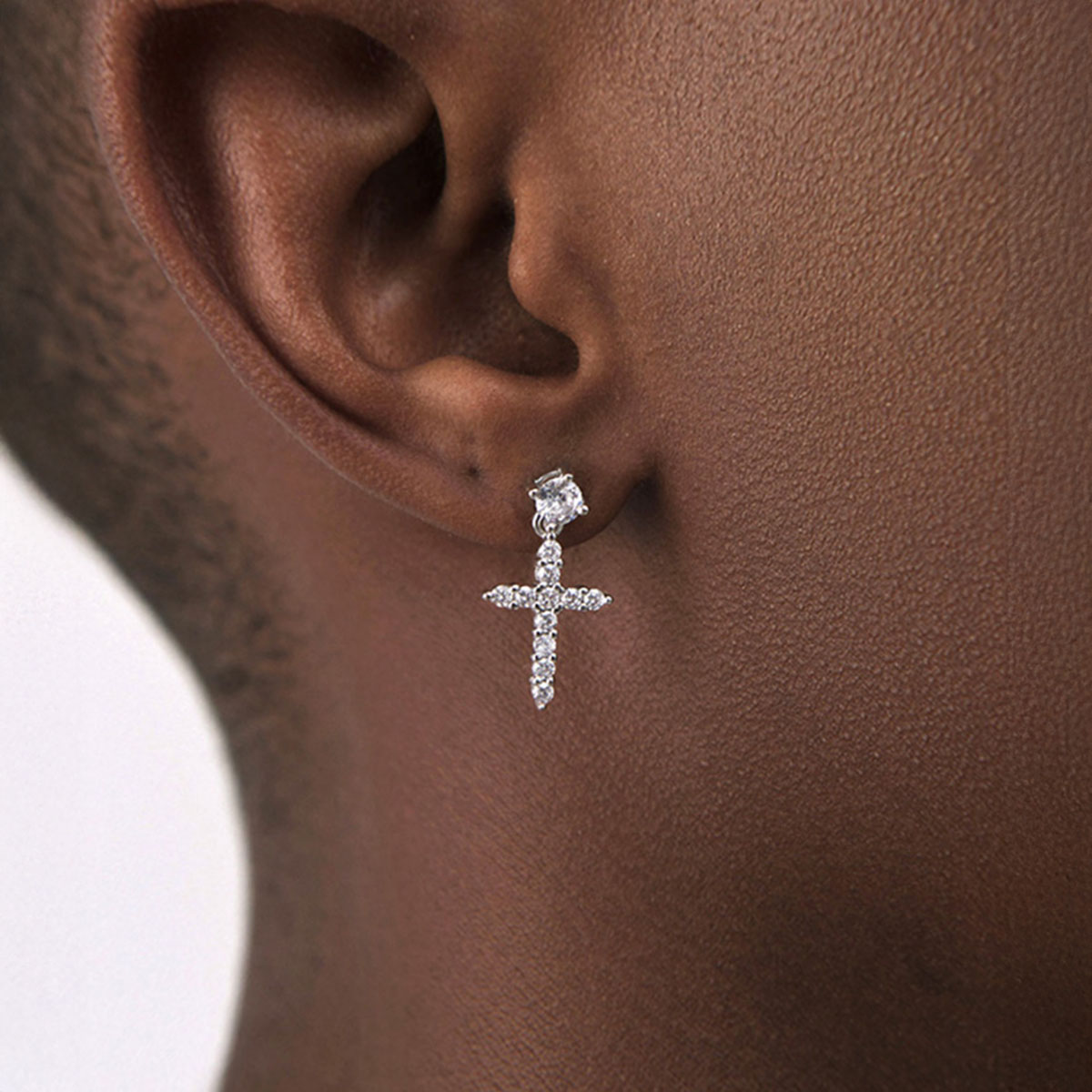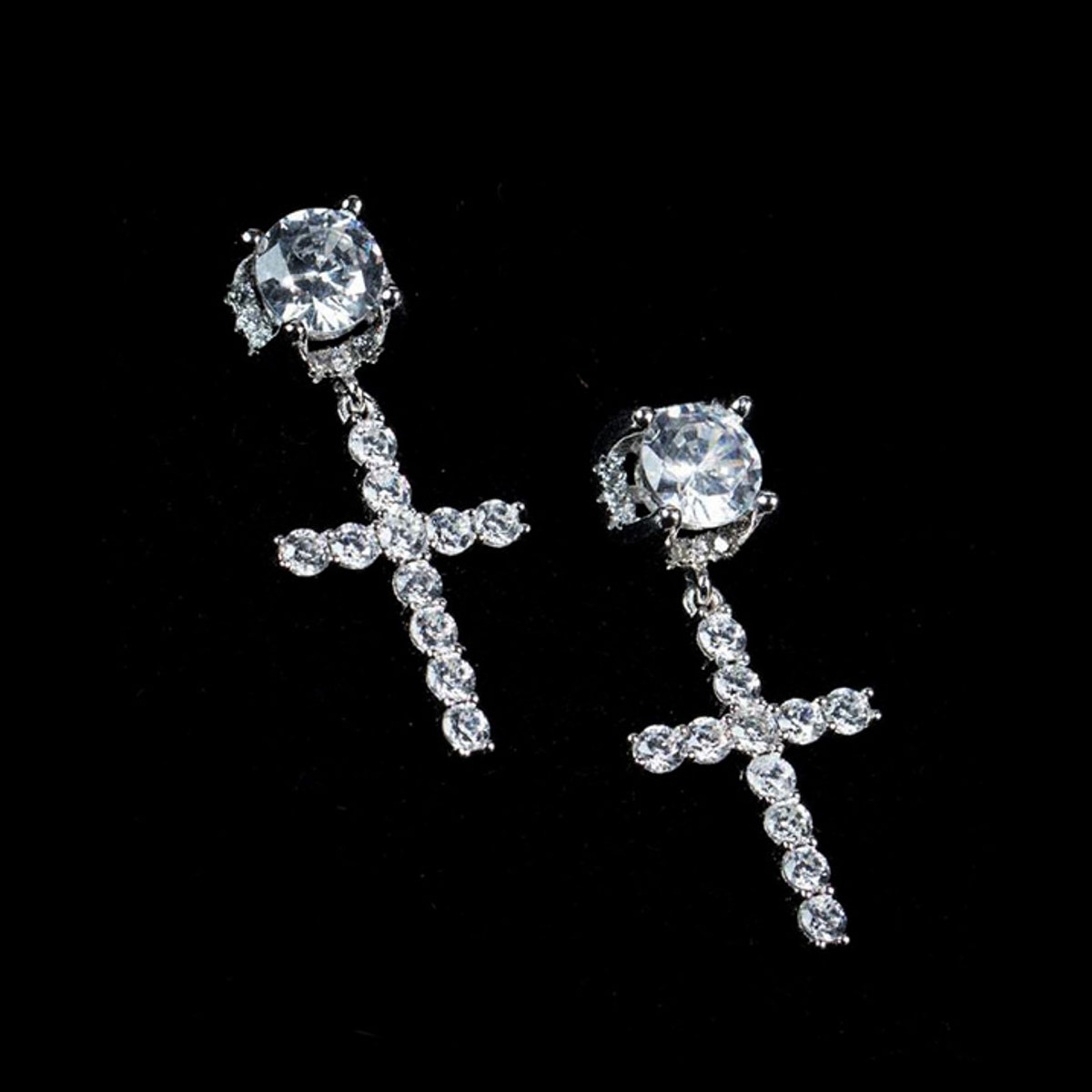These high-end earrings combine a bold cross shape with shimmering zircon stones, providing a statement-making look. Their premium craftsmanship ensures durability and shine.