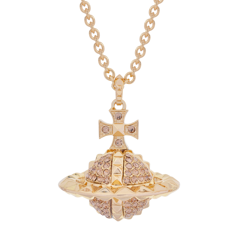 The Full Diamond Rivet Stereo Saturn Necklace features a 3D celestial pendant encrusted with brilliant diamonds and accented with rivets for an edgy touch. A luxurious and bold accessory for fashion-forward individuals.