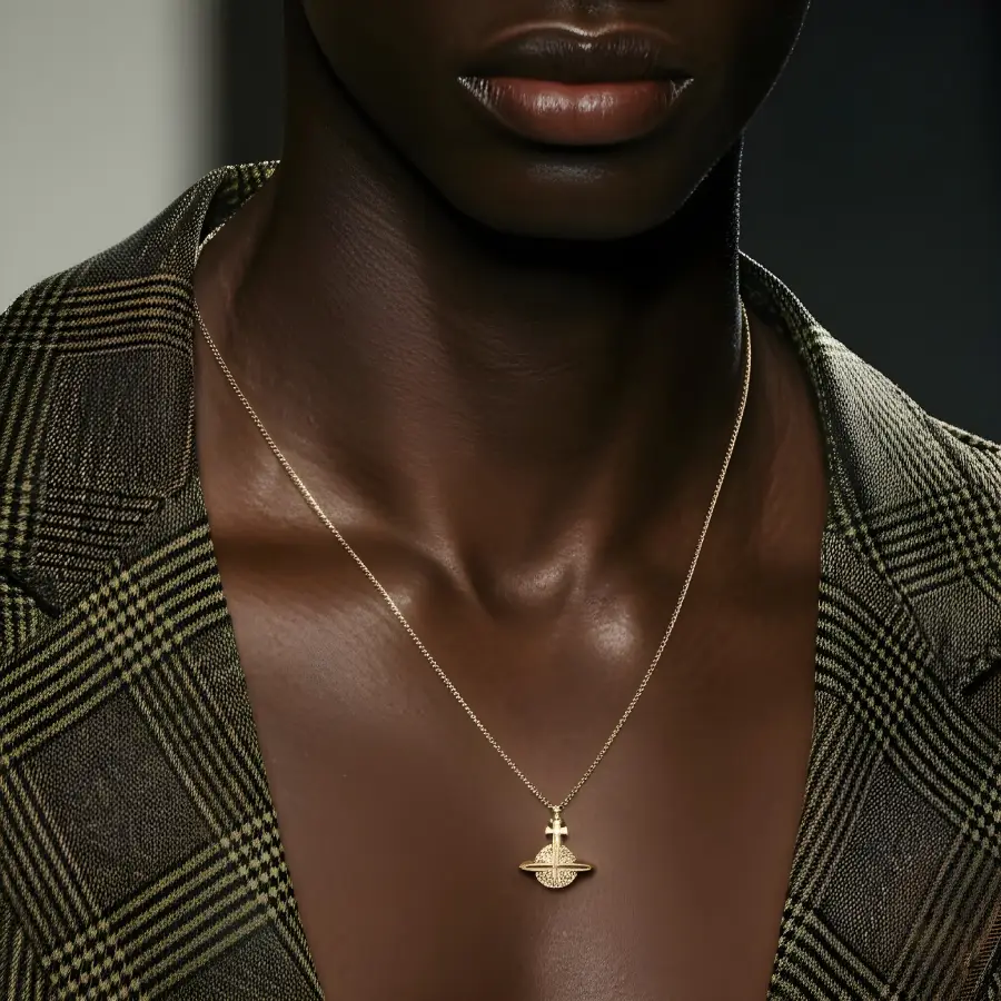 Make a bold fashion statement with the Full Diamond Rivet Stereo Saturn Necklace—a high-end, trendsetting piece that blends luxury and edgy design. Featuring a 3D Saturn planet pendant adorned with brilliant full diamonds, this necklace embodies a futuristic and avant-garde aesthetic. The rivet details add a punk-inspired touch, making it perfect for those who love unique and standout accessories. Crafted with premium materials, it offers durability and a long-lasting shine. Elevate your streetwear or luxury fashion with this stellar necklace.
