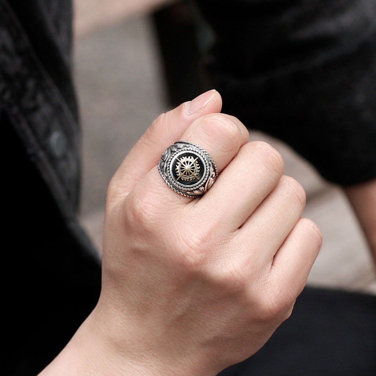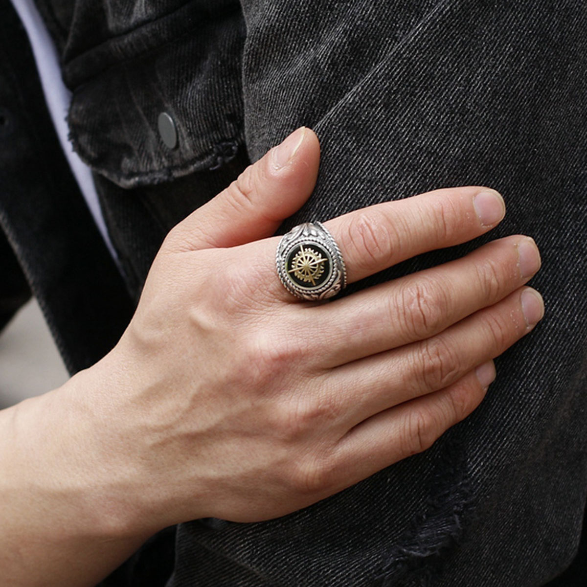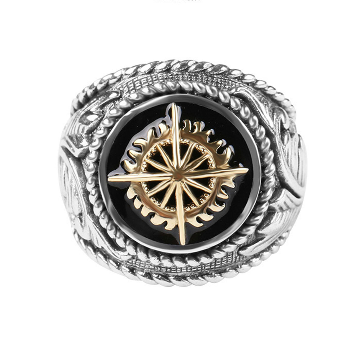 A stylish retro-inspired Thai silver ring with a golden light finish, perfect for those who appreciate classic designs with a modern edge.