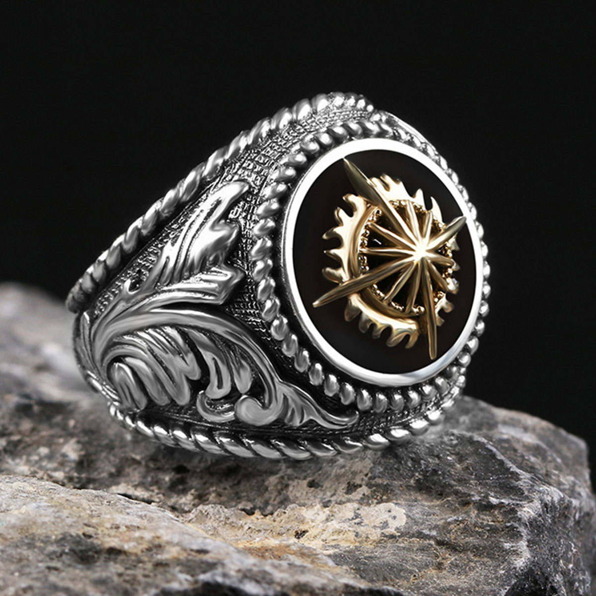 Featuring intricate detailing and a warm golden glow, this ring captures the essence of vintage craftsmanship. Its bold yet refined design makes it an ideal accessory for those who love unique and artistic jewelry.