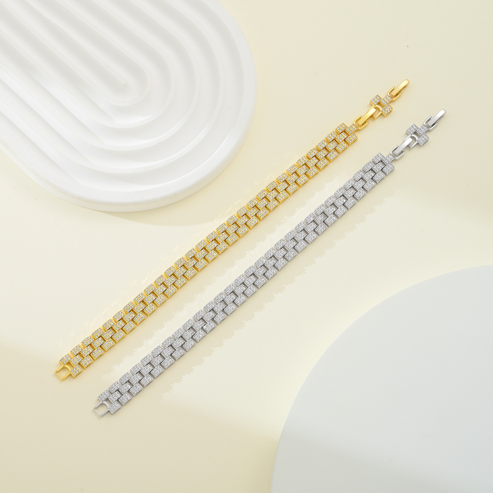 | SPECIFICATION OF THREE-ROW IRREGULAR SQUARE BRACELET IN WHITE GOLD | |