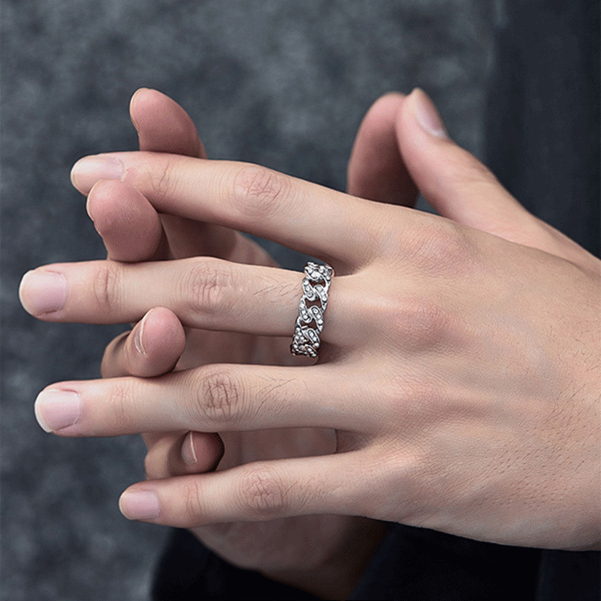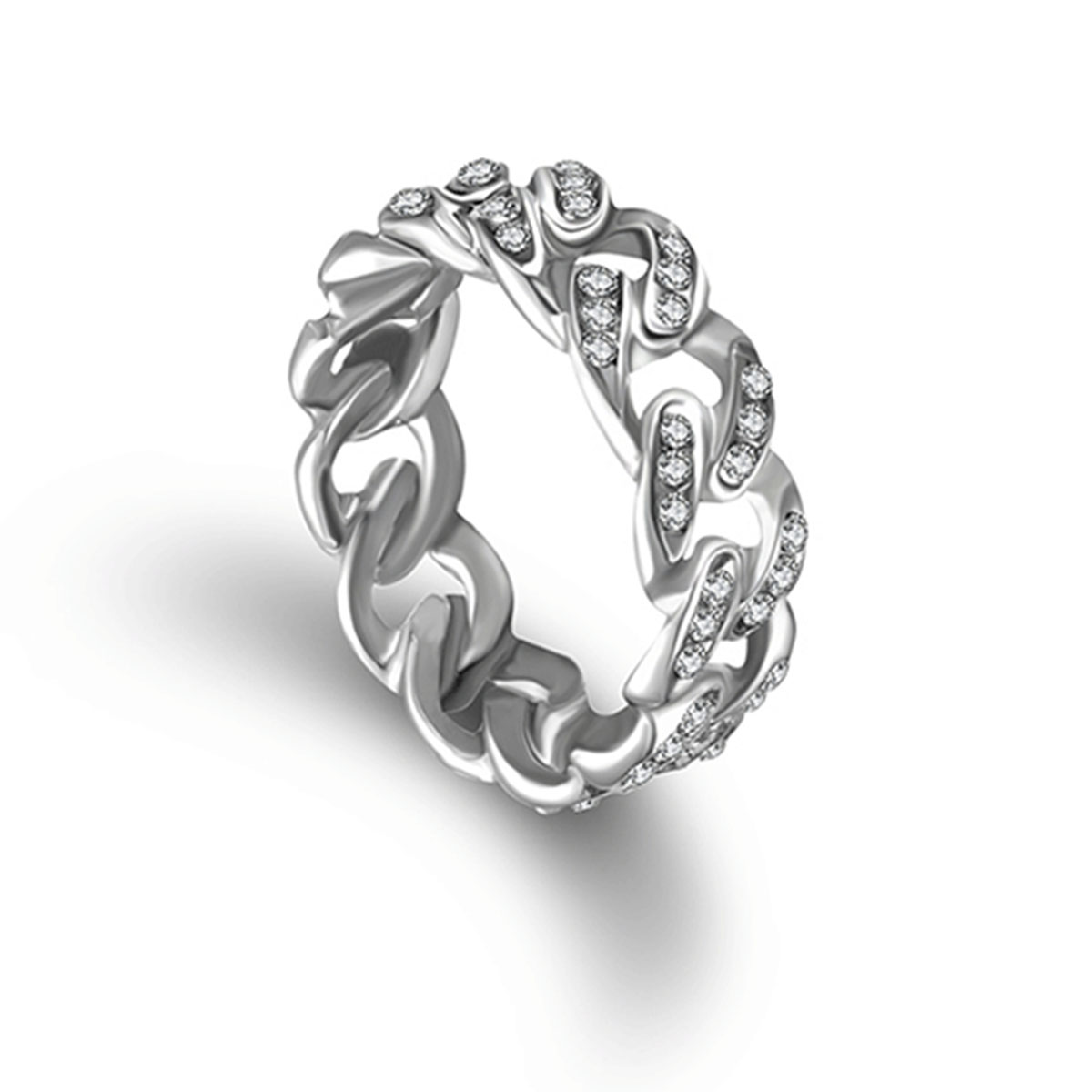A stylish and trendy Cuban-style ring encrusted with diamonds, embodying the essence of hip-hop fashion.