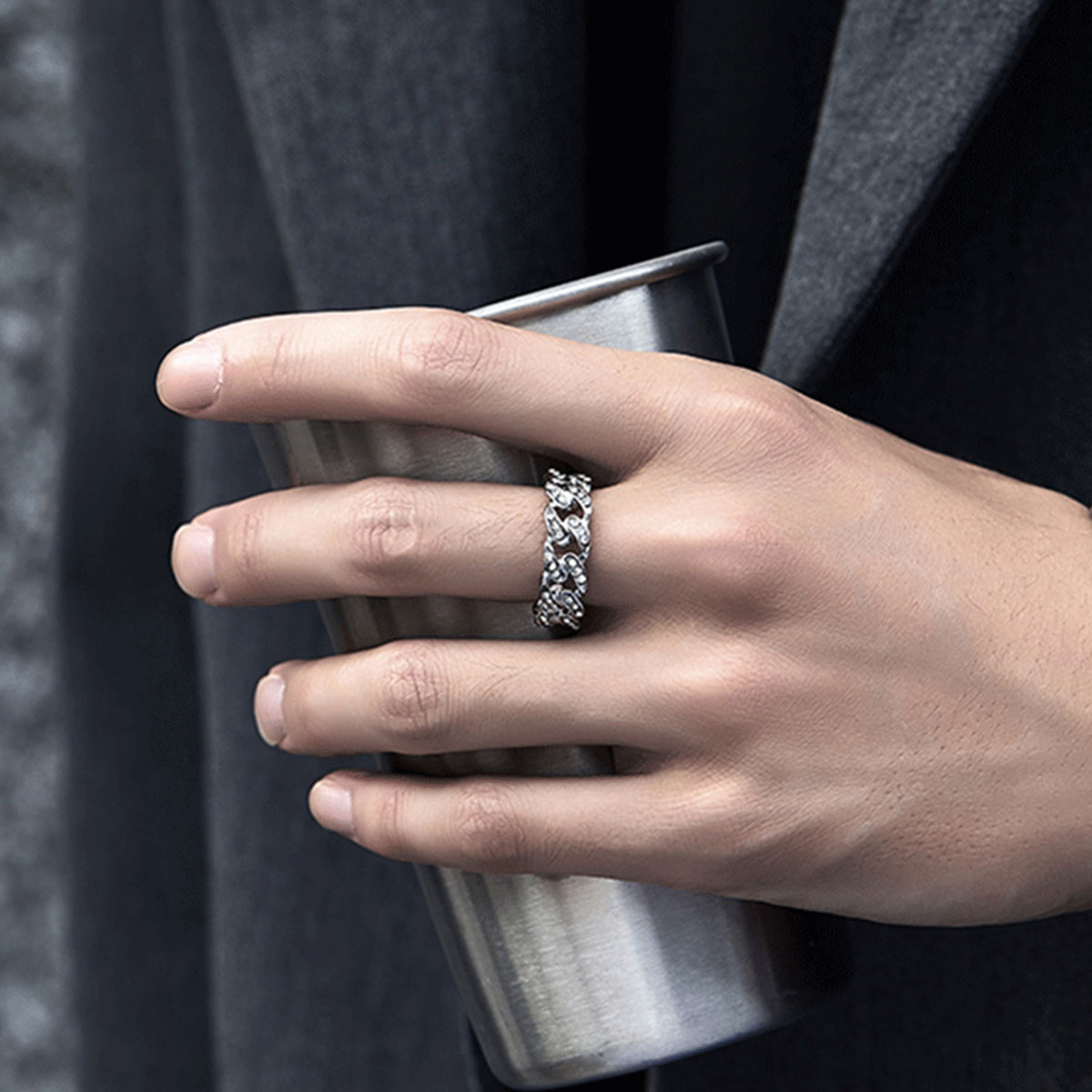 Crafted from durable titanium steel, this ring features a bold and luxurious design. The full-diamond inlay enhances its high-end appeal, making it a standout accessory for those who love unique and fashionable jewelry.