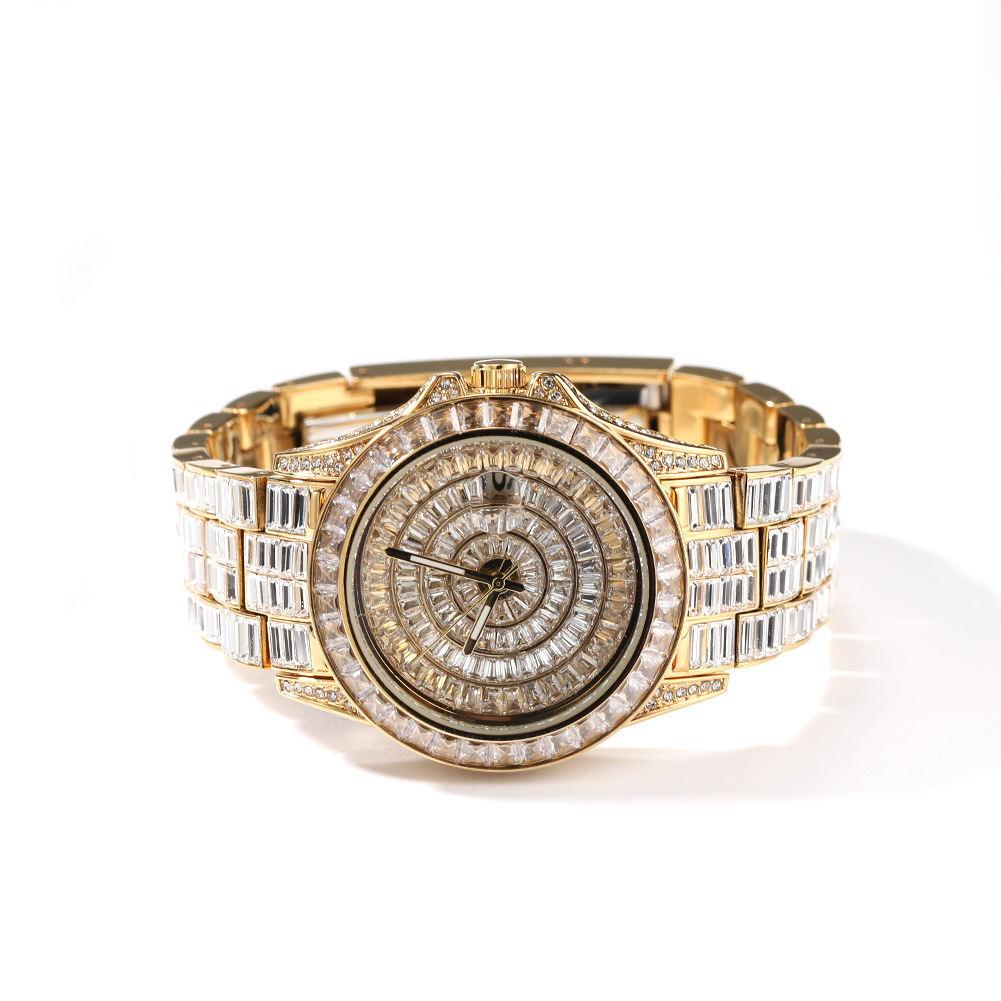 The UNTD Full Diamond Square Iced-Out Gold Men’s Watch brings together bold design and urban luxury in one unforgettable piece. Its square case is fully encrusted with shimmering simulated diamonds, giving it an all-angle brilliance. The rich gold tone elevates its status, delivering a high-end aesthetic suited for statement-makers. With a quartz-powered movement inside, it keeps time as flawlessly as it looks. Whether you’re stepping into a party, performance, or everyday scene, this iced-out gold watch from UNTD is your go-to for attention, presence, and confidence. Crafted for those who like their accessories loud, flashy, and unforgettable.