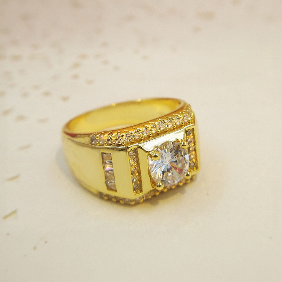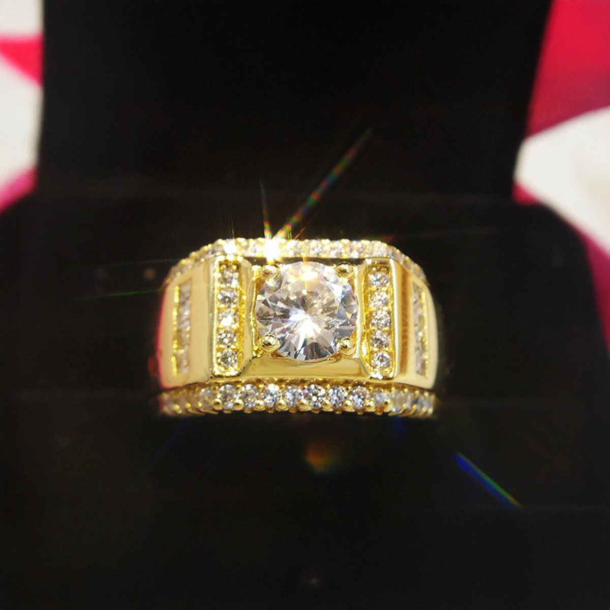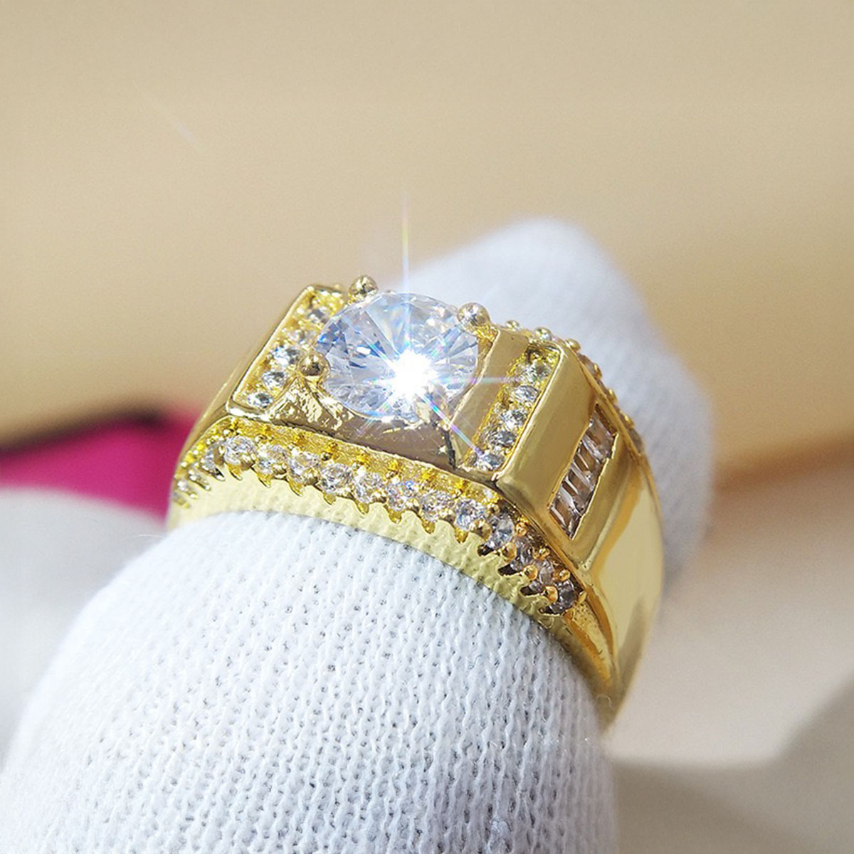 A domineering square-shaped diamond ring with a full micro-set design, designed for fashionable men.