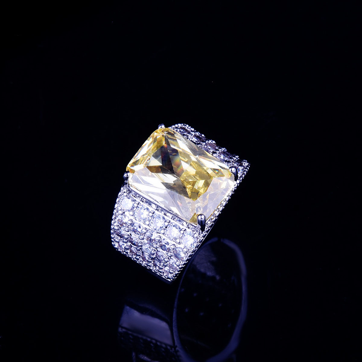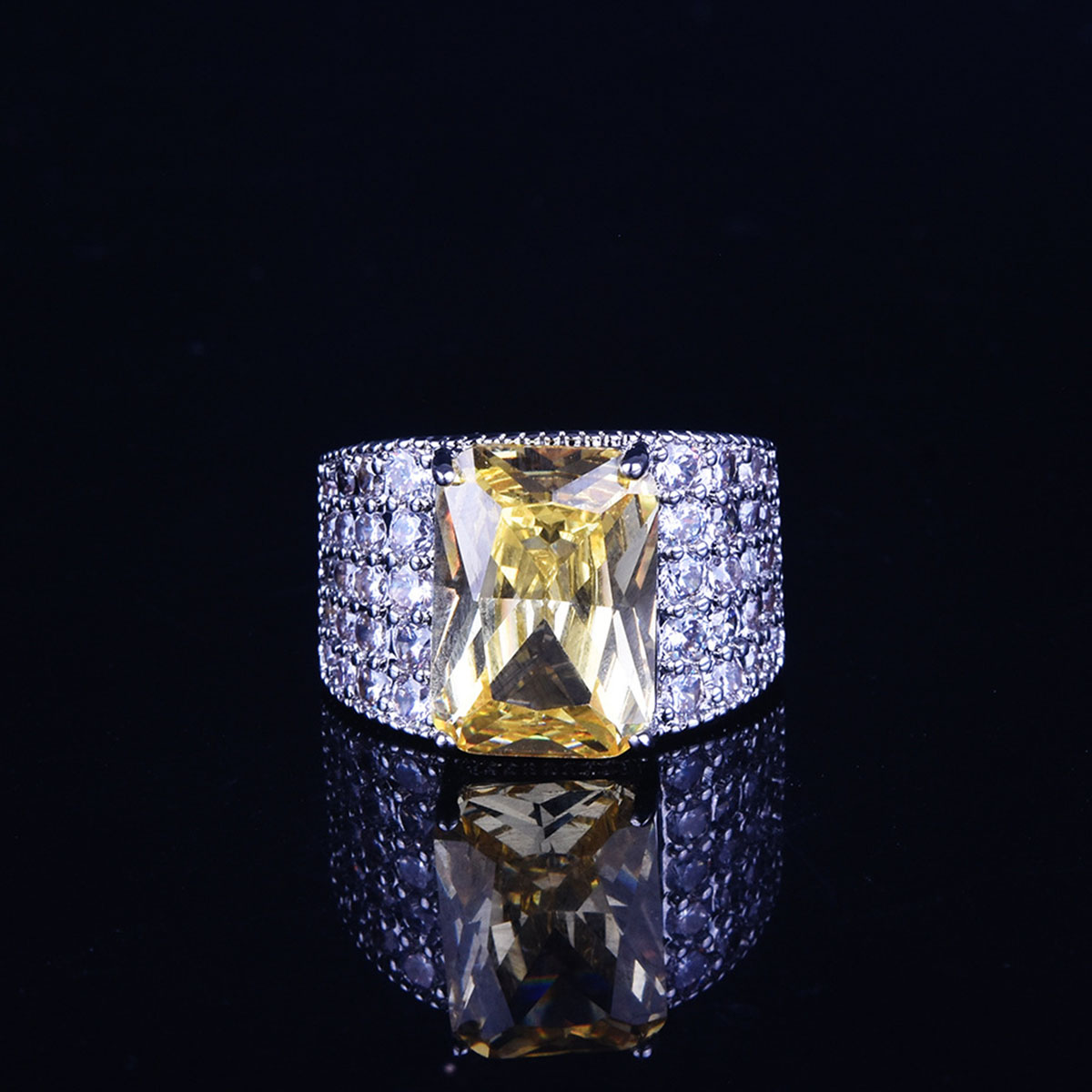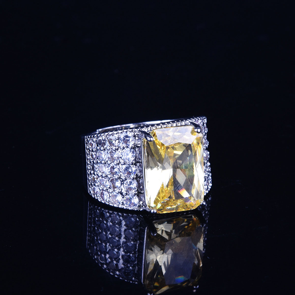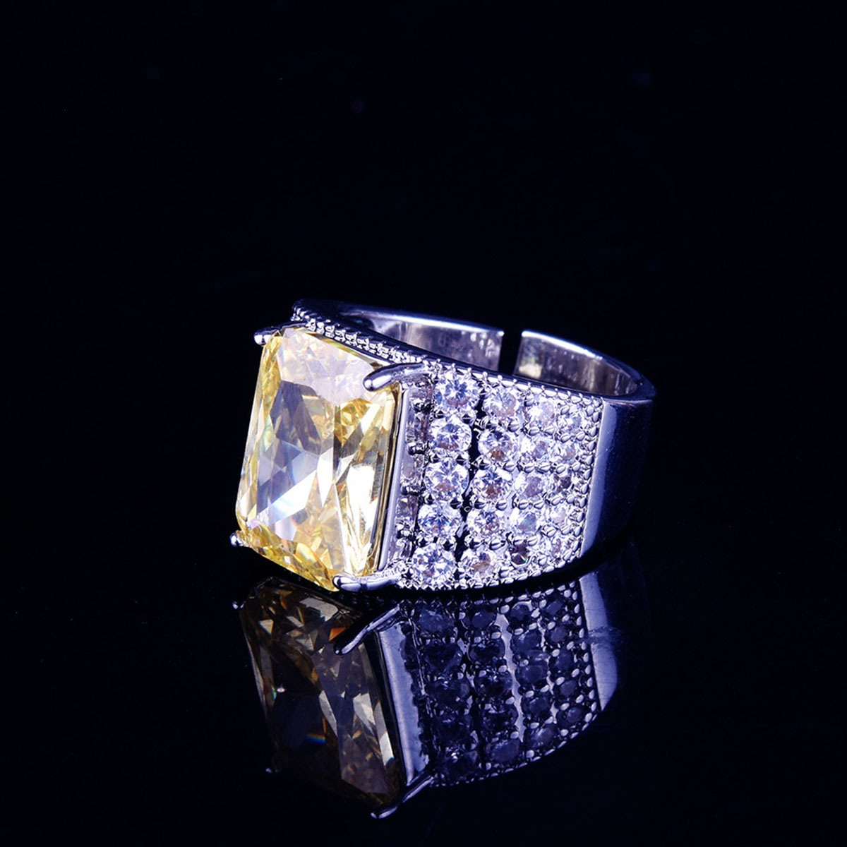 This trendy ring blends contemporary style with the timeless appeal of high-carbon diamonds. The goose yellow zircon adds a pop of color, making it suitable for both men and women who appreciate elegant and neutral accessories.