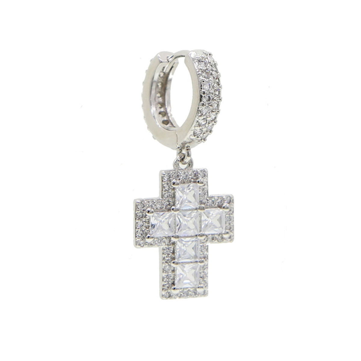 S925 silver needle earrings with zircon cross and diamond inlays, perfect for hip-hop fashion.