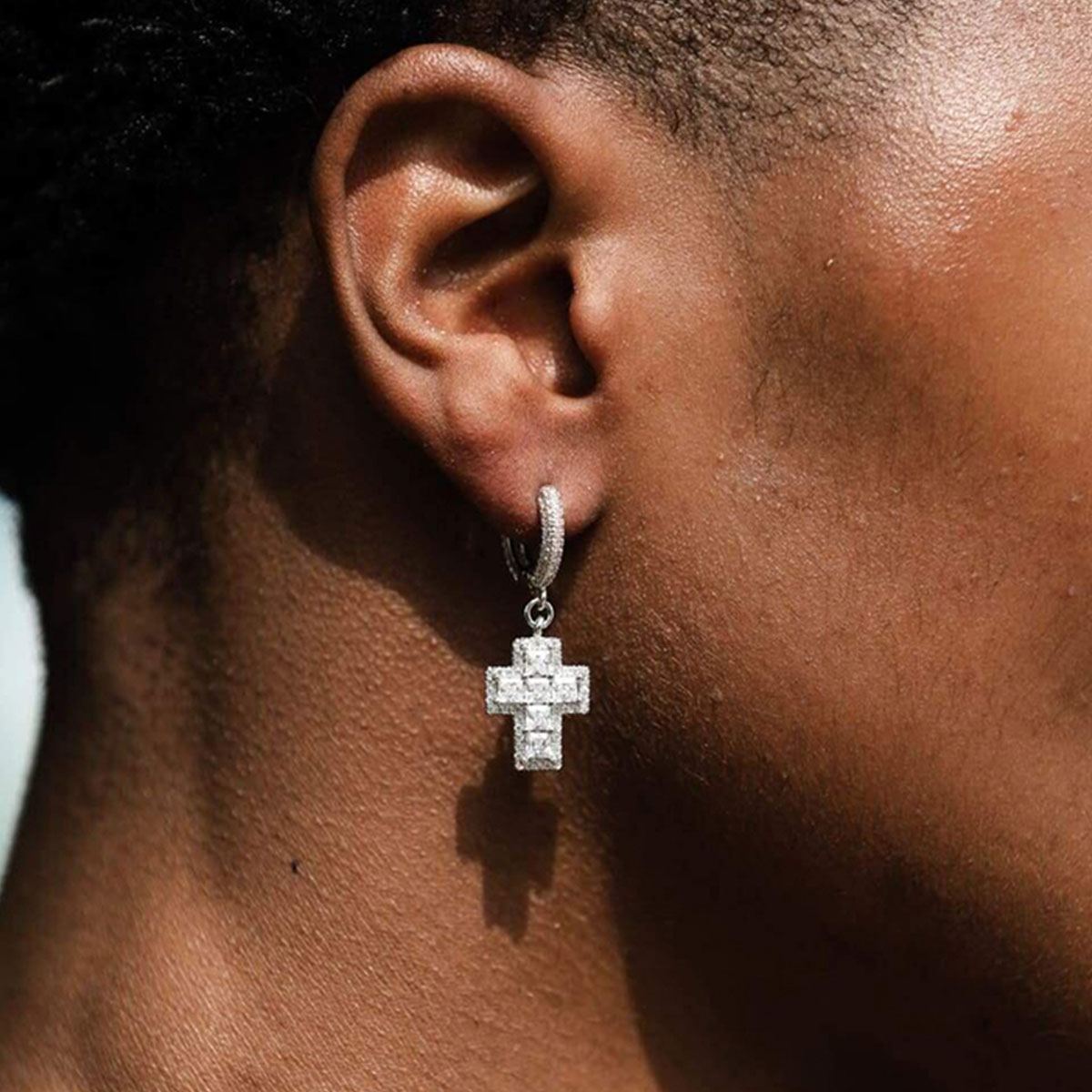 These minimalist earrings feature a cross design enhanced by diamond and zircon accents, making them a stylish and fashionable choice for both men and women who enjoy trendy accessories.