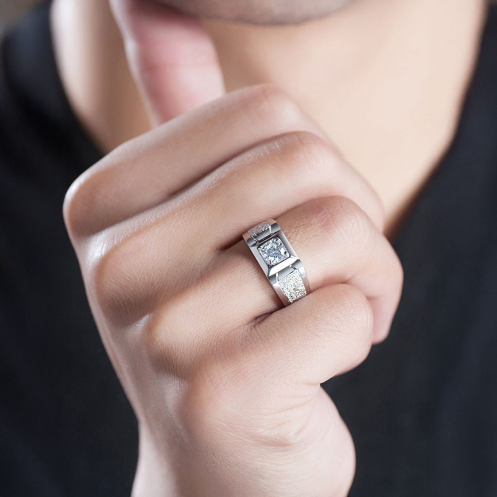 925 Silver Adjustable White Gold Artificial Diamond Ring